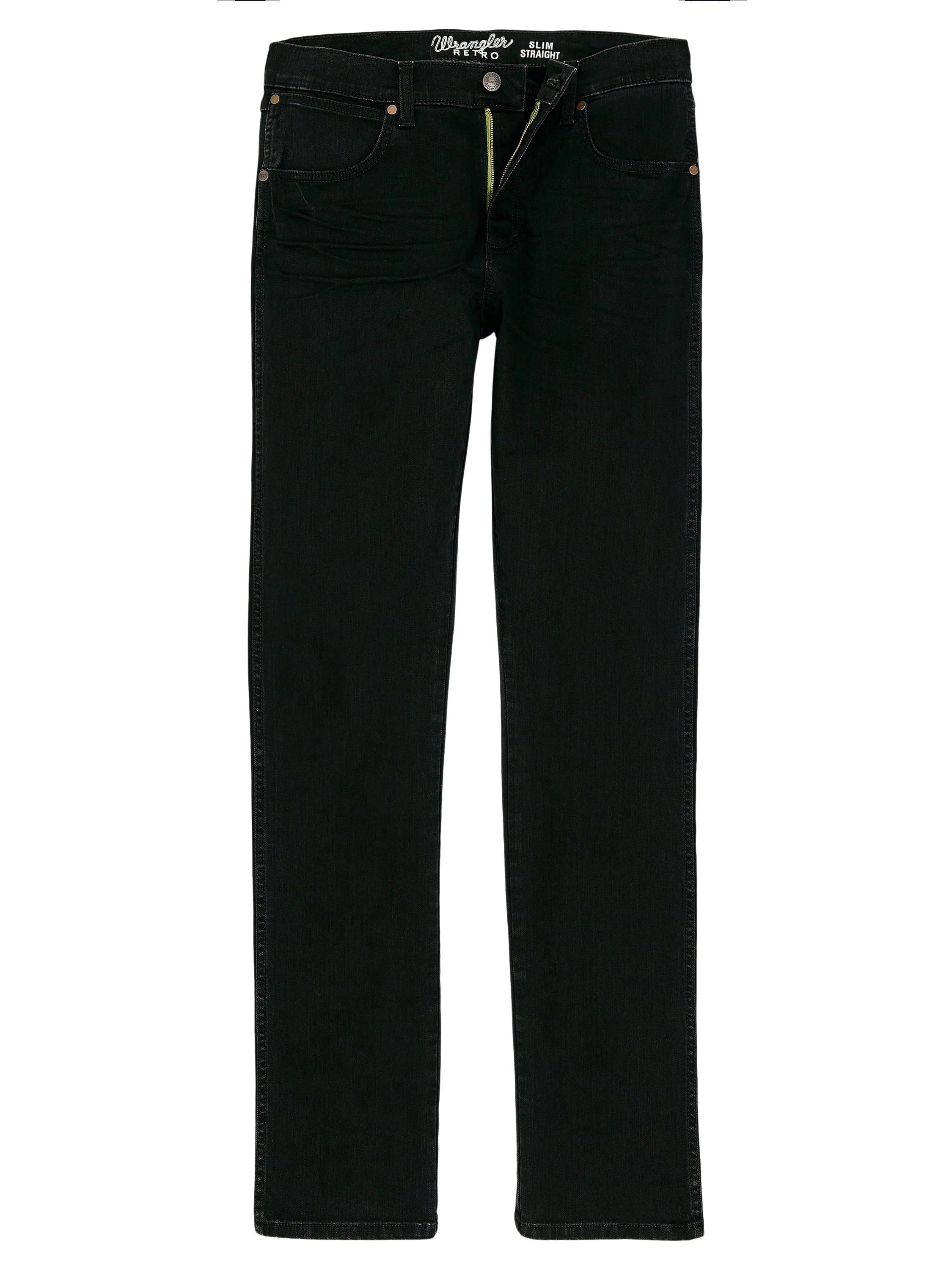 Wrangler® Retro® slim straight jeans sit low, flex with every move, and slide clean over boots for classic cowboy style in soft stretch denim all-day. Color Blackwell