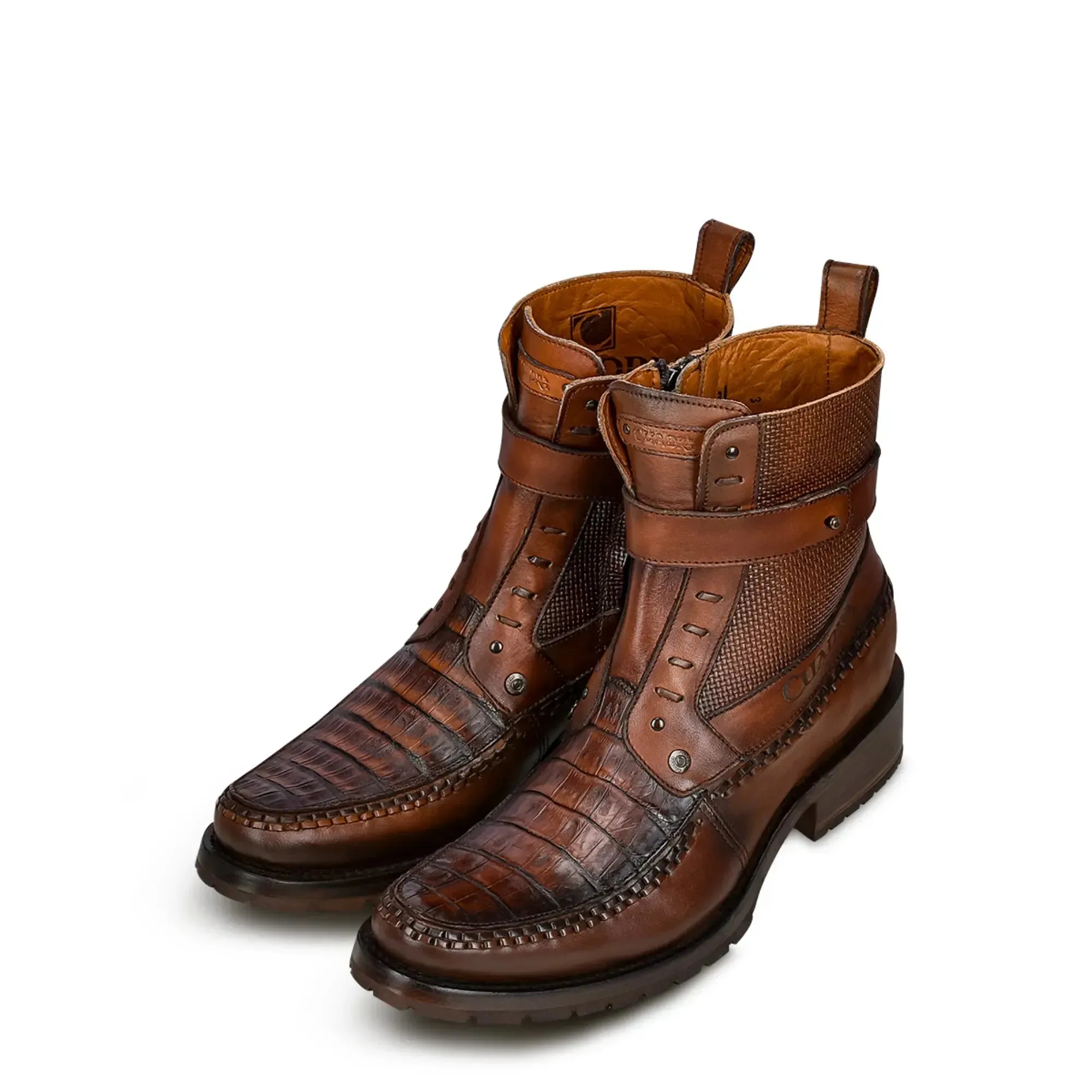 Meet Cuadra’s Brown Exotic Skin Boot, a round-toe ankle boot made with genuine caiman leather. The side zipper makes it easy to slip on, and the durable build feels right for daily wear or nights out.