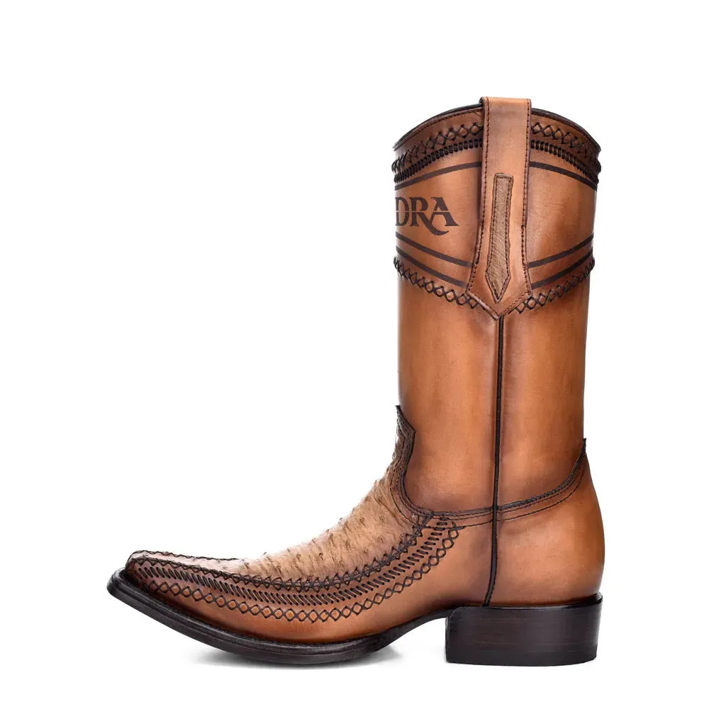 Slip into Cuadra men’s ostrich full quill western boots in light brown Orix. This mid-calf pair has a narrow square toe and a rich, textured look that stands out. Built for comfort you can wear all day, with the long-lasting feel you want.