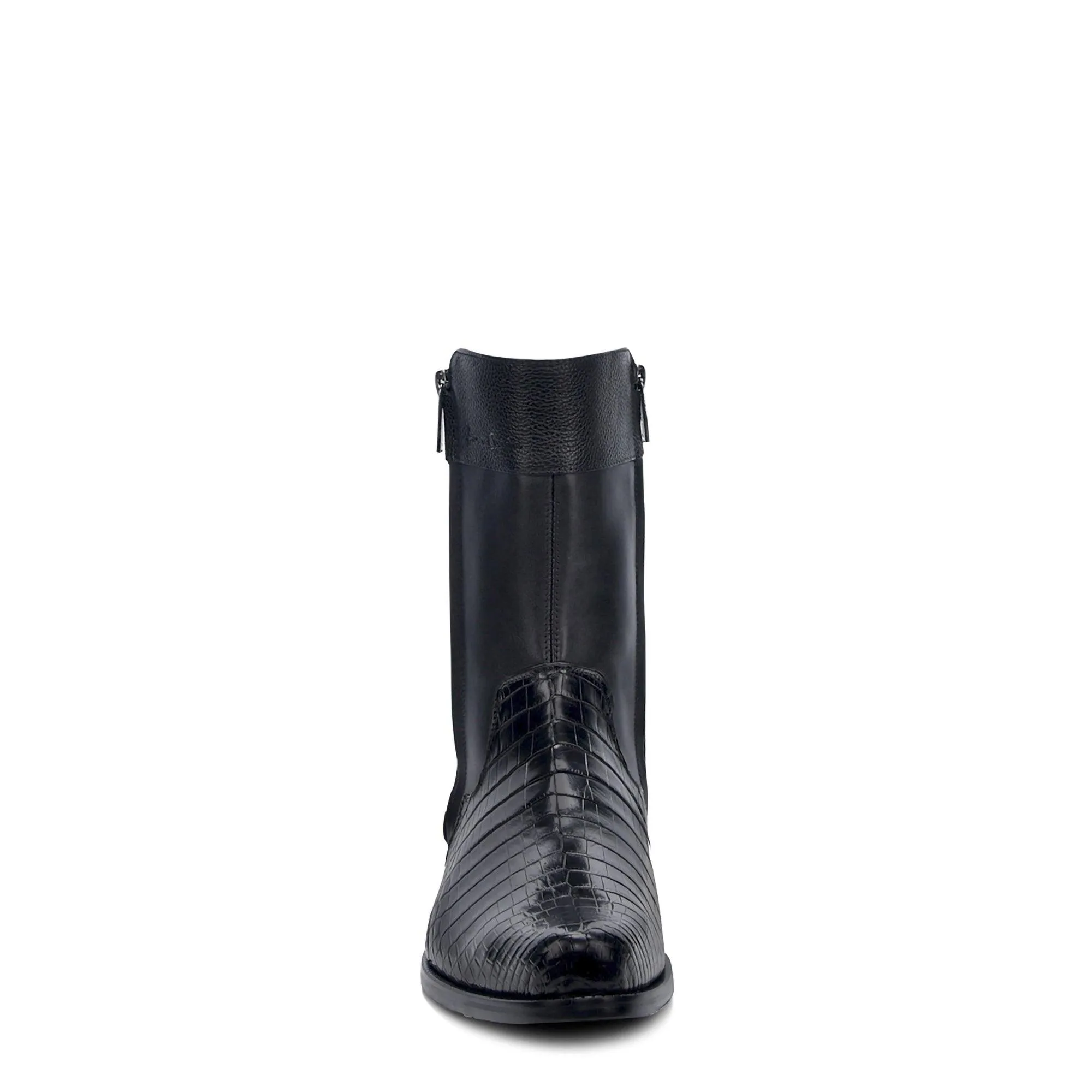 Bold and luxe, the Franco Cuadra Ankle Boot (802NPTS, FC823) pairs black niloticus crocodile with all-day comfort, so it looks right with jeans or slacks.