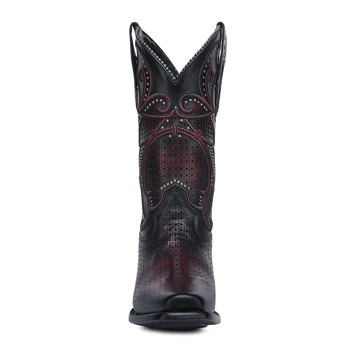 Step out in rich wine cowhide with Cuadra style. Laser-cut details, embroidery, and studs add western shine, while the square toe keeps it bold and easy to wear.